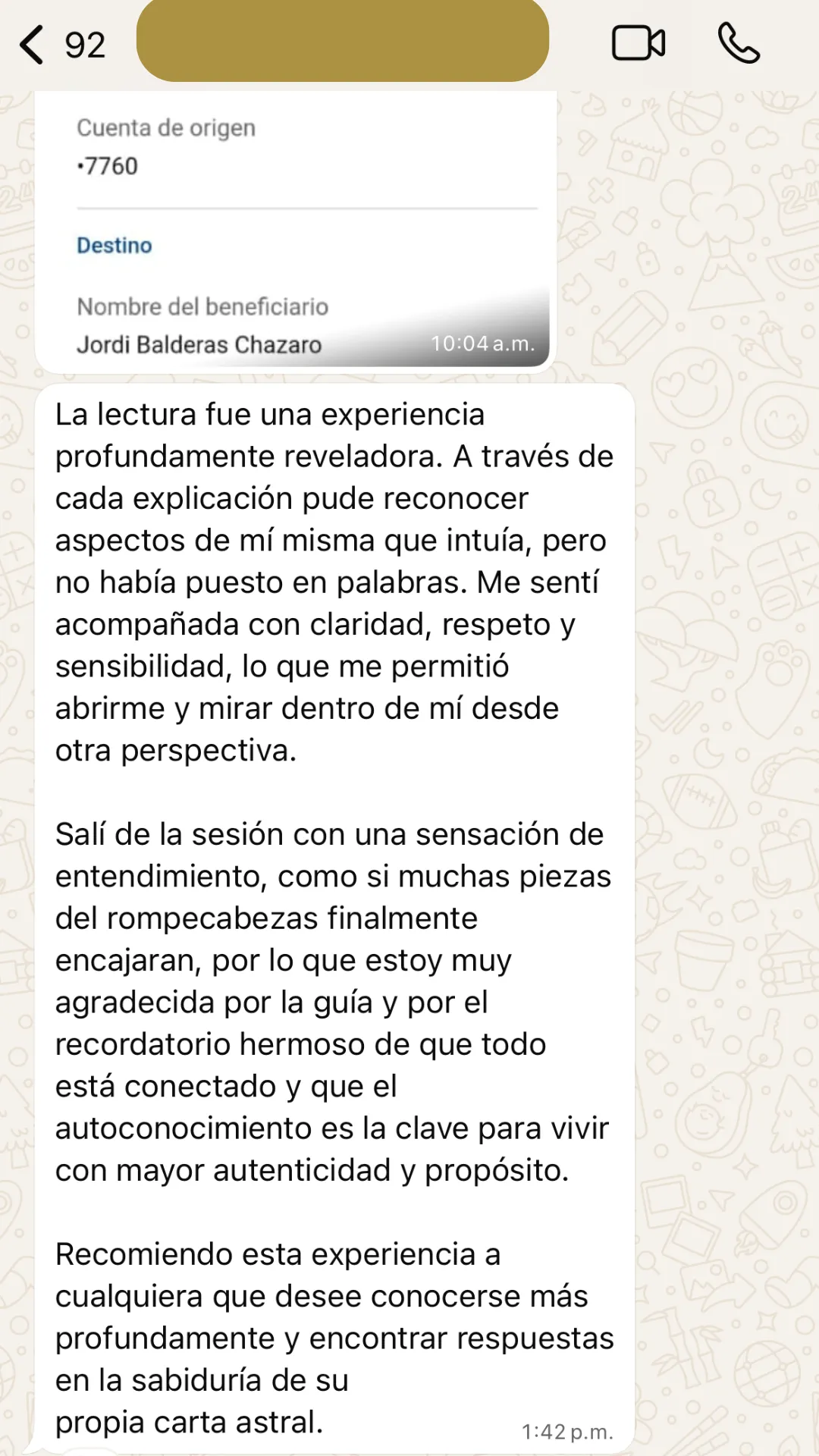 Mi forma de leer une lo profundo con lo concreto: interpreto tus patrones internos y cómo se reflejan afuera, en tus relaciones, trabajo, ciclos y experiencias.